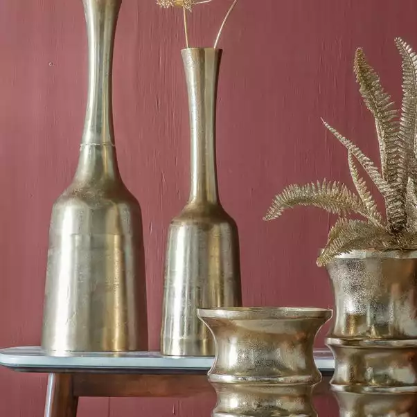 Stylish and sleek, the Rosalie Vase will add a timeless and welcoming feel to your living areas. Finished with a golden colourway and crafted from aluminium, the vase can be used year after year or bought as a gift for a loved one to display floristry or just as an ornament.
