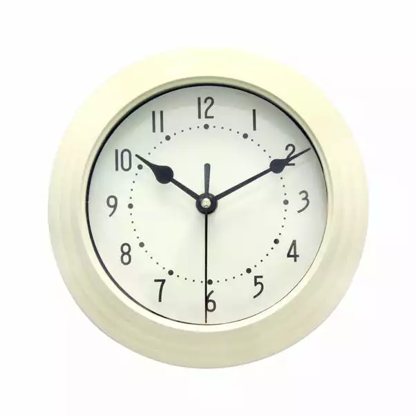 With a traditional round frame and clock face in a retro finish, this small wall clock is available in a choice of colours.
