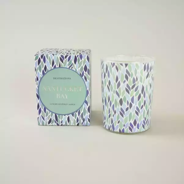 Set within a 220g glass pot, this stunning candle has a 26 hour burn time, adding a fragrant scent to any room of the house. Packaged in a beautiful gift box with wax pot to match the theme, this piece has a Sea salt scent.