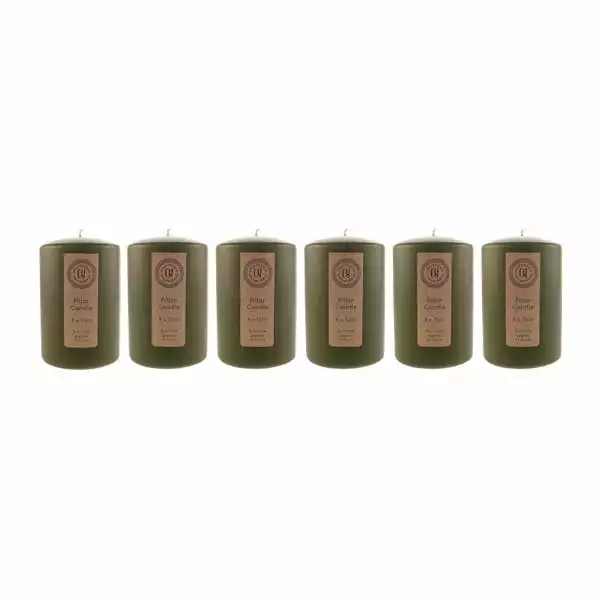 Dunelm Pack Of 6 Olive Pillar Candles