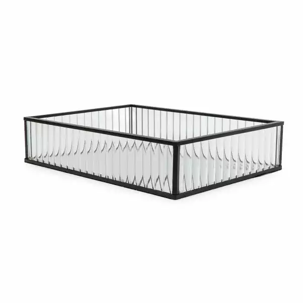 Perfect for adding a touch of stylish decor to any home, this stunning glass tray would make a gorgeous decorative storage solution for your room or an elegant gift for a loved one. Complete with transparent ribbed glass and a black coloured metal outline frame.