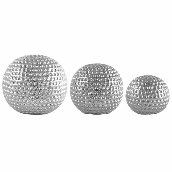 This set of three silver coloured ceramic sphere ornaments come in three different sizes and feature an all over dimple textured effect.