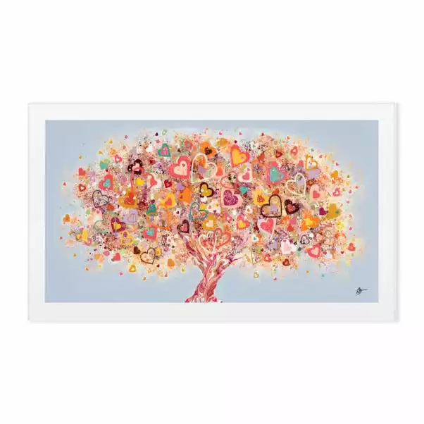 Create a statement with this large landscape wall art with a textured finish. Featuring a bright and colourful tree covered with hearts, this delightful piece will spread love and joy within your home.