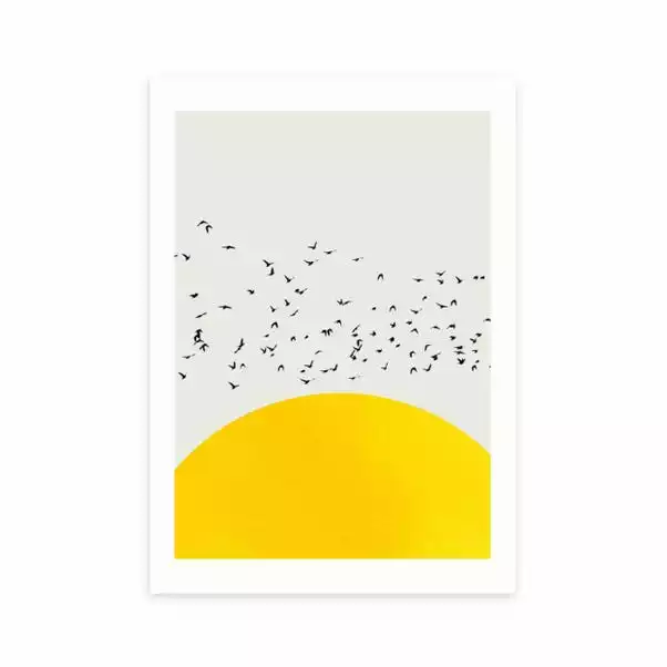 Bring warmth, peace and balance to your space with the A Thousand Birds Print, featuring a vivid orange yellow colour and silhouettes of birds. This print is bursting with colour and made to last as it uses a Giclee printing process to stay vibrant and prevent fading over years. Each design is available in four print sizes and a variety of frame options, including unframed, so you can display your artwork however you wish.