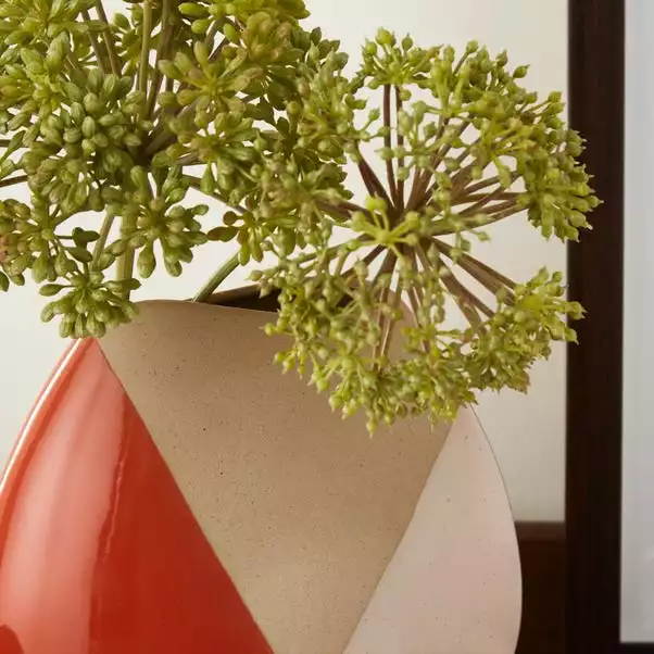 Featuring a modern, elegant design with an orange and pink colourway. This stunning Elements Sculpted Round Vase would make an elegant addition to your home décor. Beautifully crafted from stoneware with a wax resist, shiny and matt finish to create a stunning effect.
