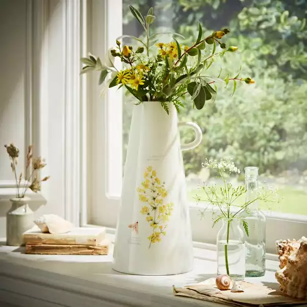 This beautiful, tapered jug shape vase with handles features a decorative floral decal design, perfect for adding an element of artistic design flair to any room, with its modern colourway, complementing an array of home decors beautifully. The Lady’s Bedstraw Ceramic Tall Vase is made from high-quality Fine China and is perfect for displaying indoor plants in your home.