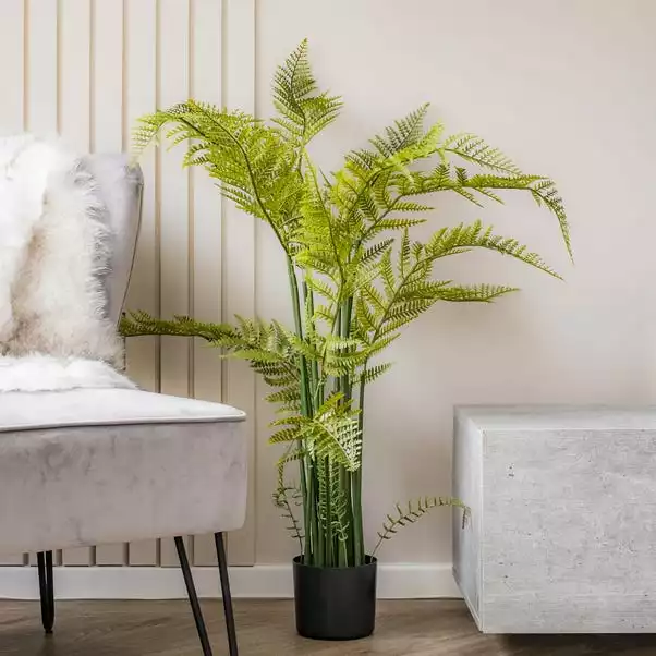 Brighten up your home with this fabulous statement piece Oversized Fern. Designed in a 130cm height which will add an elegant finishing touch to your home. With no maintenance, you don’t have to fuss over your Fern Tree, and you can style it with your own planter to match your home decor.