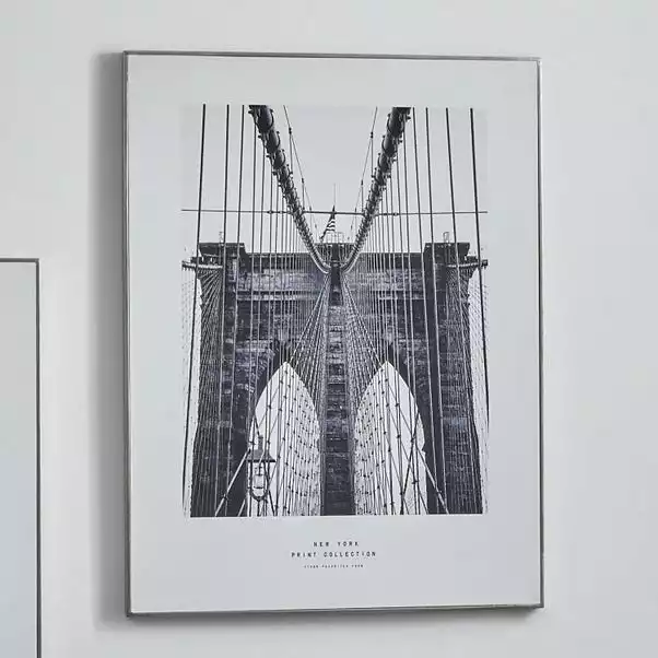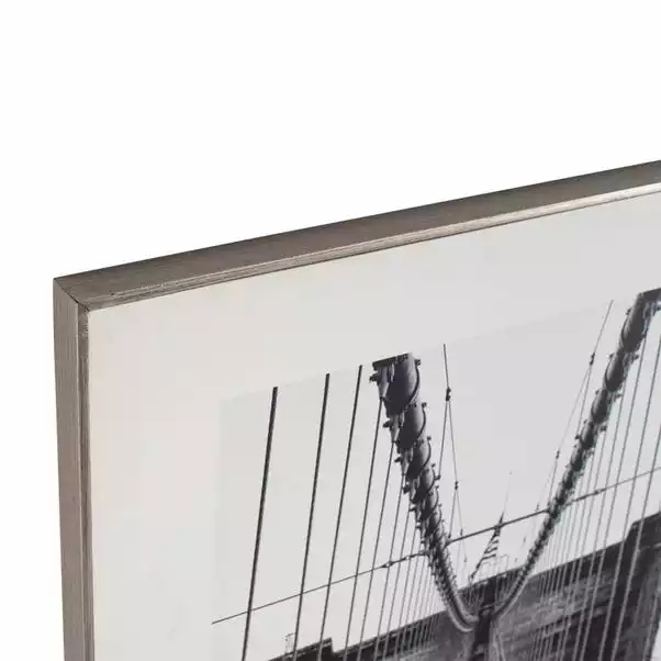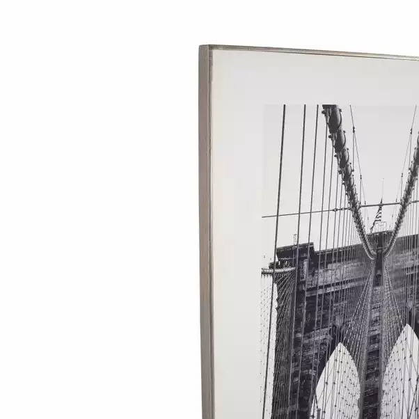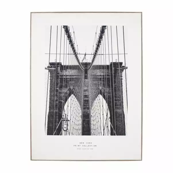 Fill your walls with wonder, curiosity and travel with the Mono New York Canvas Print. This minimalist print features an architectural shot of the New York Brooklyn Bridge in a monochrome colourway to expose its great details. Perfect for evoking fond memories, prompting travel or simply filling a blank space with a stylish print, this artwork is perfect for discretely adding décor to a space without appearing too invasive or distracting.