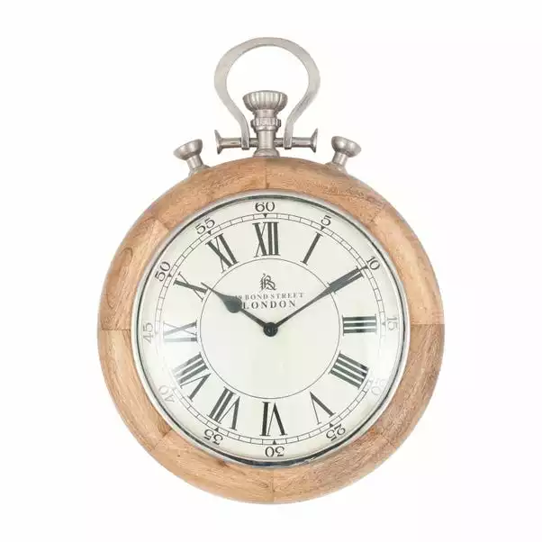 Decorate your space with the quirky and traditional stylings of the Nickel & Mango Wood Stopwatch Wall Clock for a striking timepiece packed with eye-catching features and practicality. Featuring classic styled hands and roman numeral figures for an elegant look, this wall clock has a compact stopwatch design and mango wood border for a timeless finish.